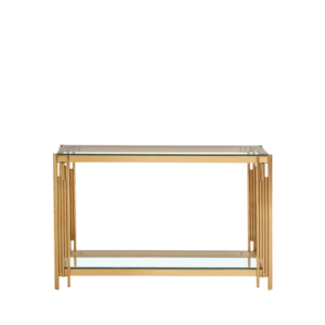 The Coven Table Collection showcases a stunning tubular stainless steel frame, available in Shiny Gold or Shiny Chrome. Each piece is topped with a clear tempered glass surface and complemented by a lower glass shelf, offering both style and practicality. With its sleek lines and modern finish, the Coven range brings a touch of timeless elegance to any interior.