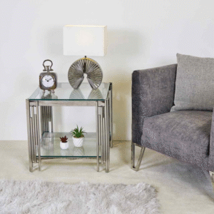 The Coven Table Collection showcases a stunning tubular stainless steel frame, available in Shiny Gold or Shiny Chrome. Each piece is topped with a clear tempered glass surface and complemented by a lower glass shelf, offering both style and practicality. With its sleek lines and modern finish, the Coven range brings a touch of timeless elegance to any interior.