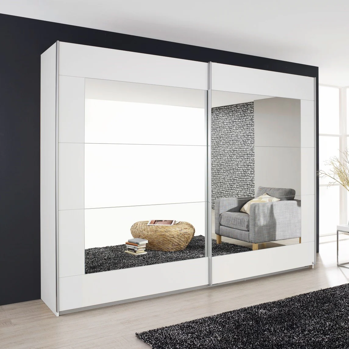 - Stylish mirror pads on each door for added depth and light