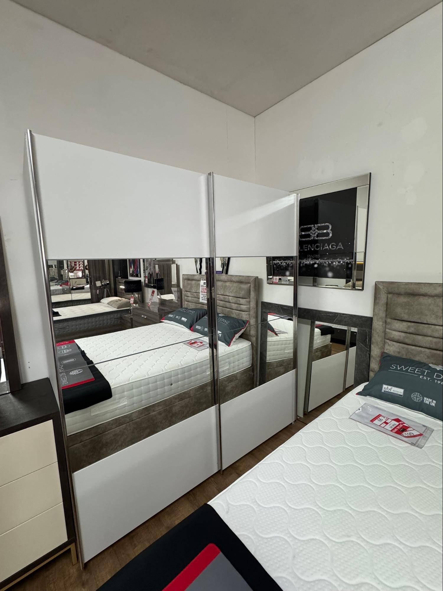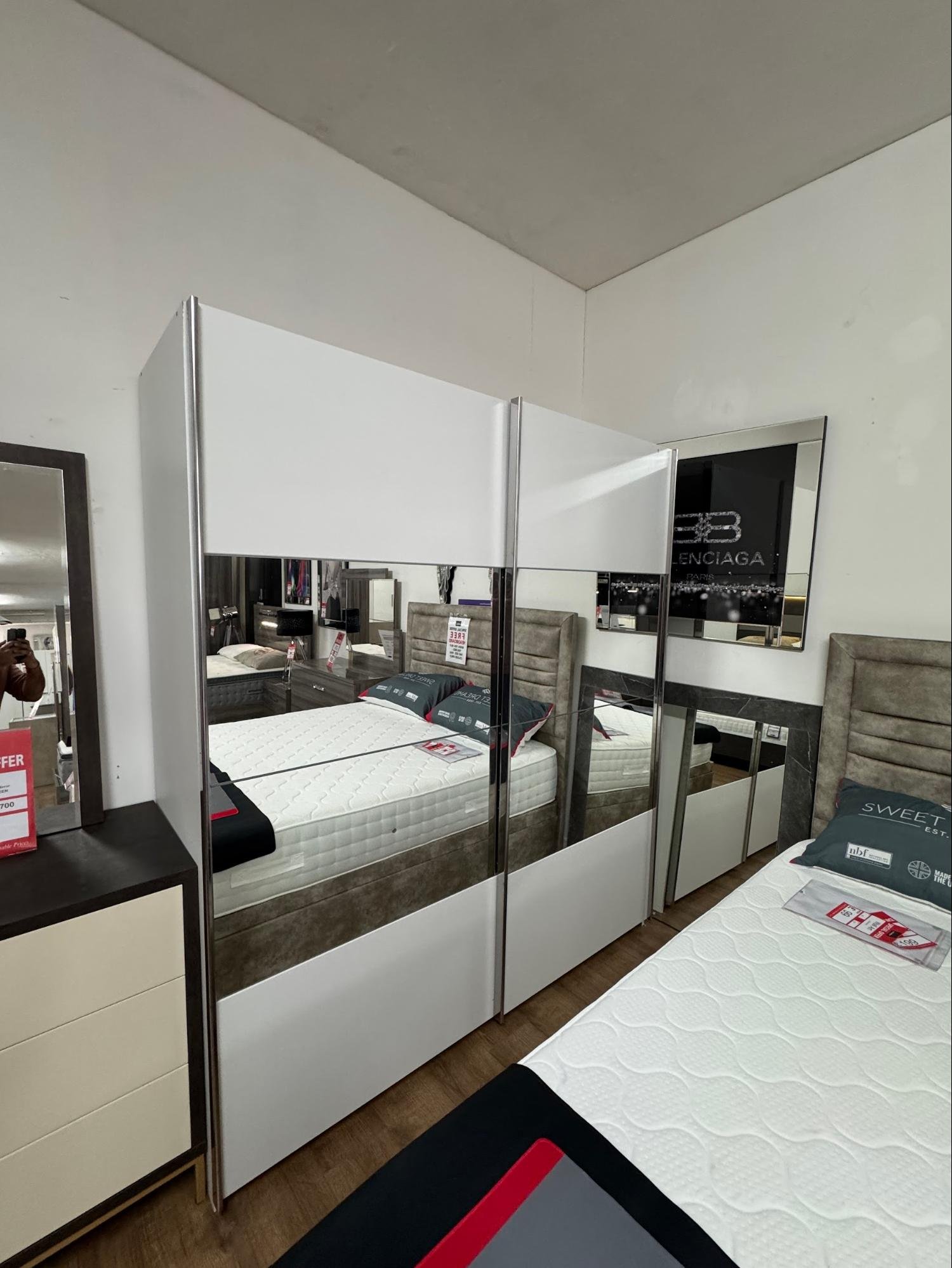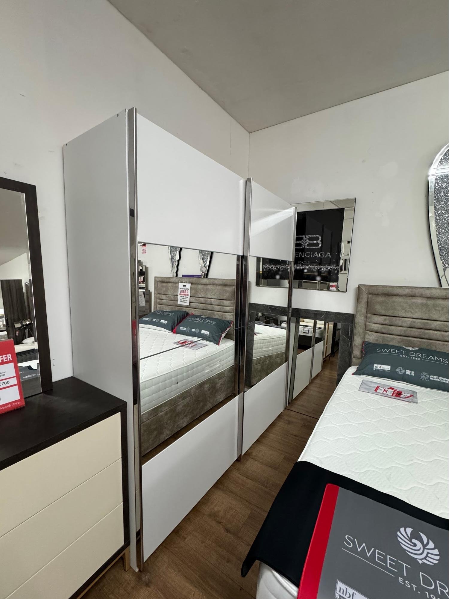 The Alice Silk Grey & Alpine White Sliding Door Wardrobe combines style, practicality, and space efficiency in one stunning piece. The mirror adds brightness and depth, while the internal layout offers generous and versatile storage options.