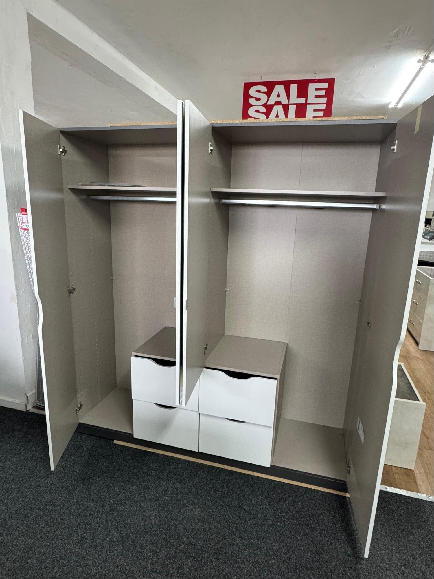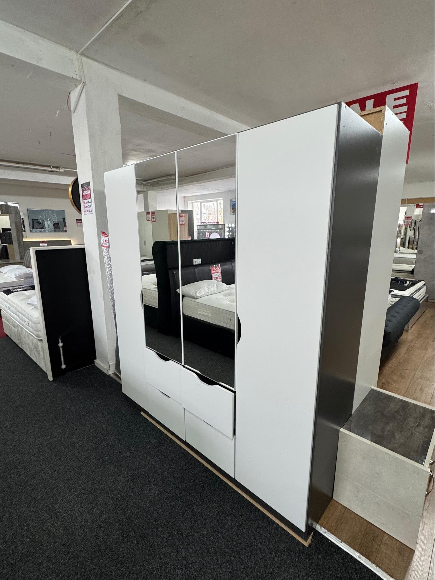 Arney 4 Door 4 Drawer Combi Wardrobe – White Front with Grey Carcase