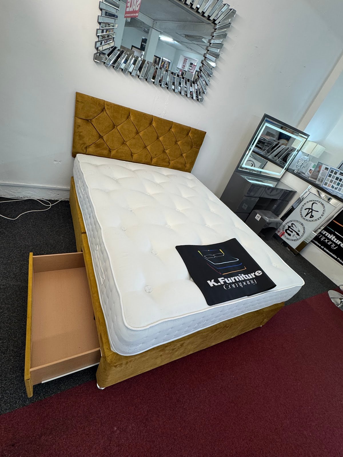 Paired with a robust divan base and a stylish upholstered headboard, the Backcare 2000 Divan Bed Set combines practical storage, orthopedic support, and elegant design—perfect for any bedroom.