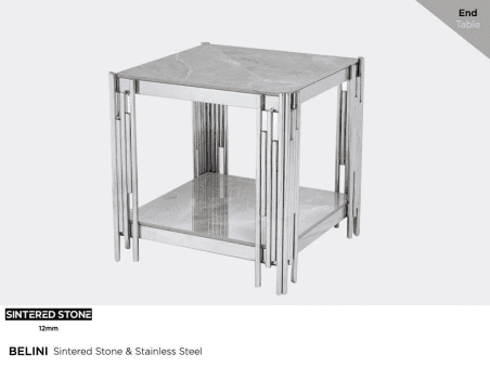 | 2 | Bella End Table – Grey & Chrome | Grey Sintered Stone | Shiny Chrome | 50cm x 50cm x 55cm |