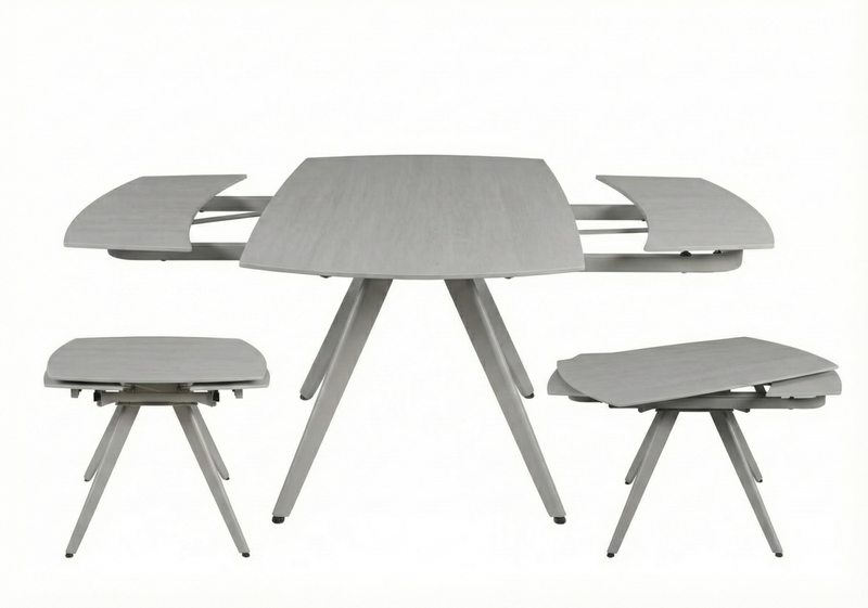 Redefine your dining experience with the Camberley Extending Dining Set, a perfect fusion of modern elegance and everyday functionality. Designed to impress, this stylish set includes a sleek extendable table paired with 4 luxurious swivel fabric chairs, offering both comfort and flexibility for contemporary living.