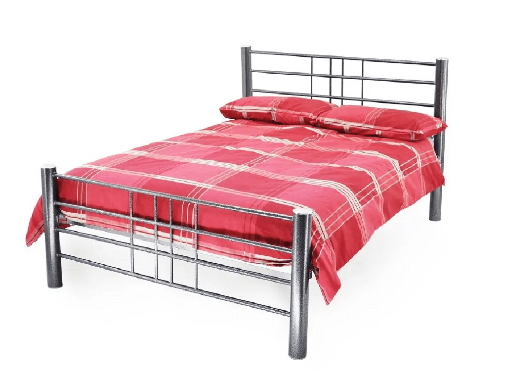 CUBE Bed Frame – Hammered Silver with Mesh Base
