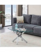 Bring a modern edge to your living room with the Dax Oval Coffee Table. Designed with style and practicality in mind, this elegant piece features a clear tempered glass top paired with a distinctive chrome-finished metal frame for a refined, contemporary look.
