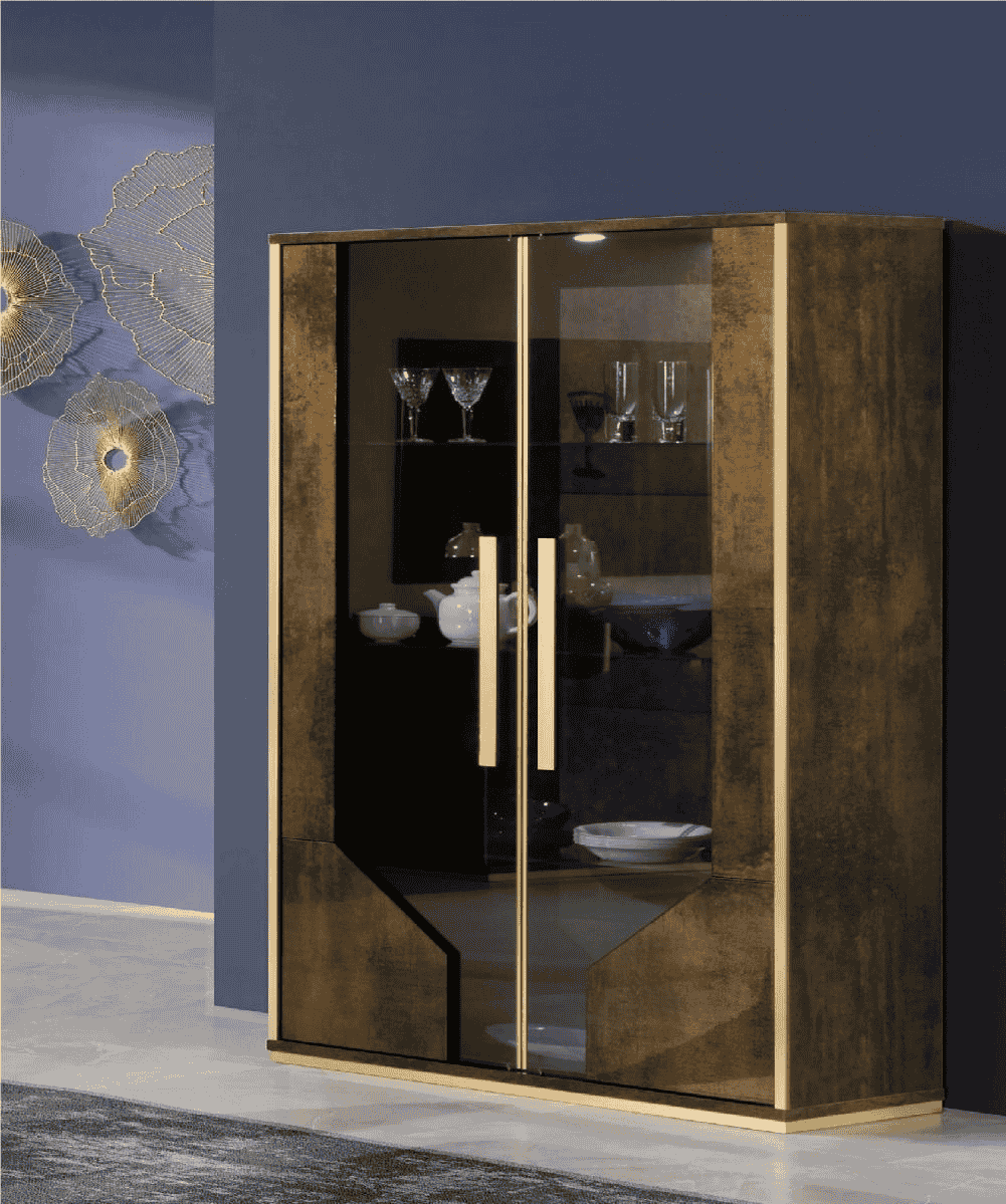 Diva 2-Door Display Cabinet (Vetrine) – Bronze & Gold Finish