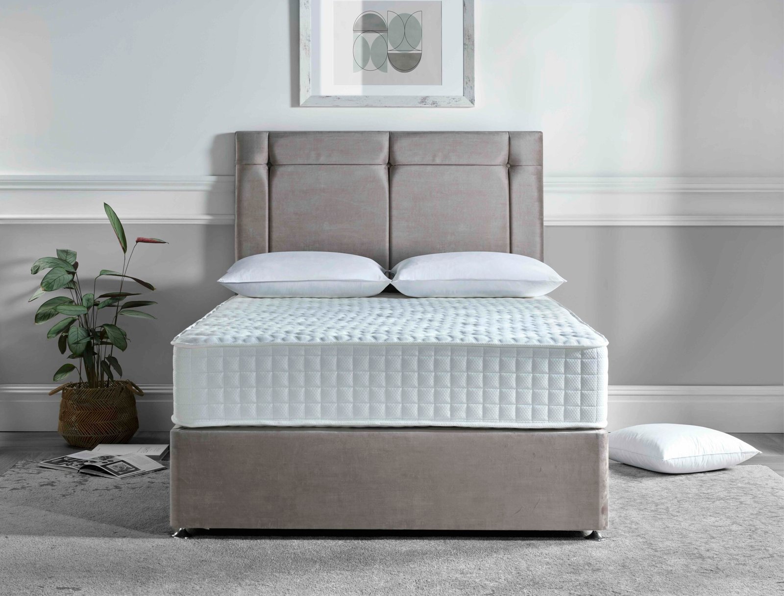 sturdy divan base, and a matching upholstered headboard, making it a practical and stylish