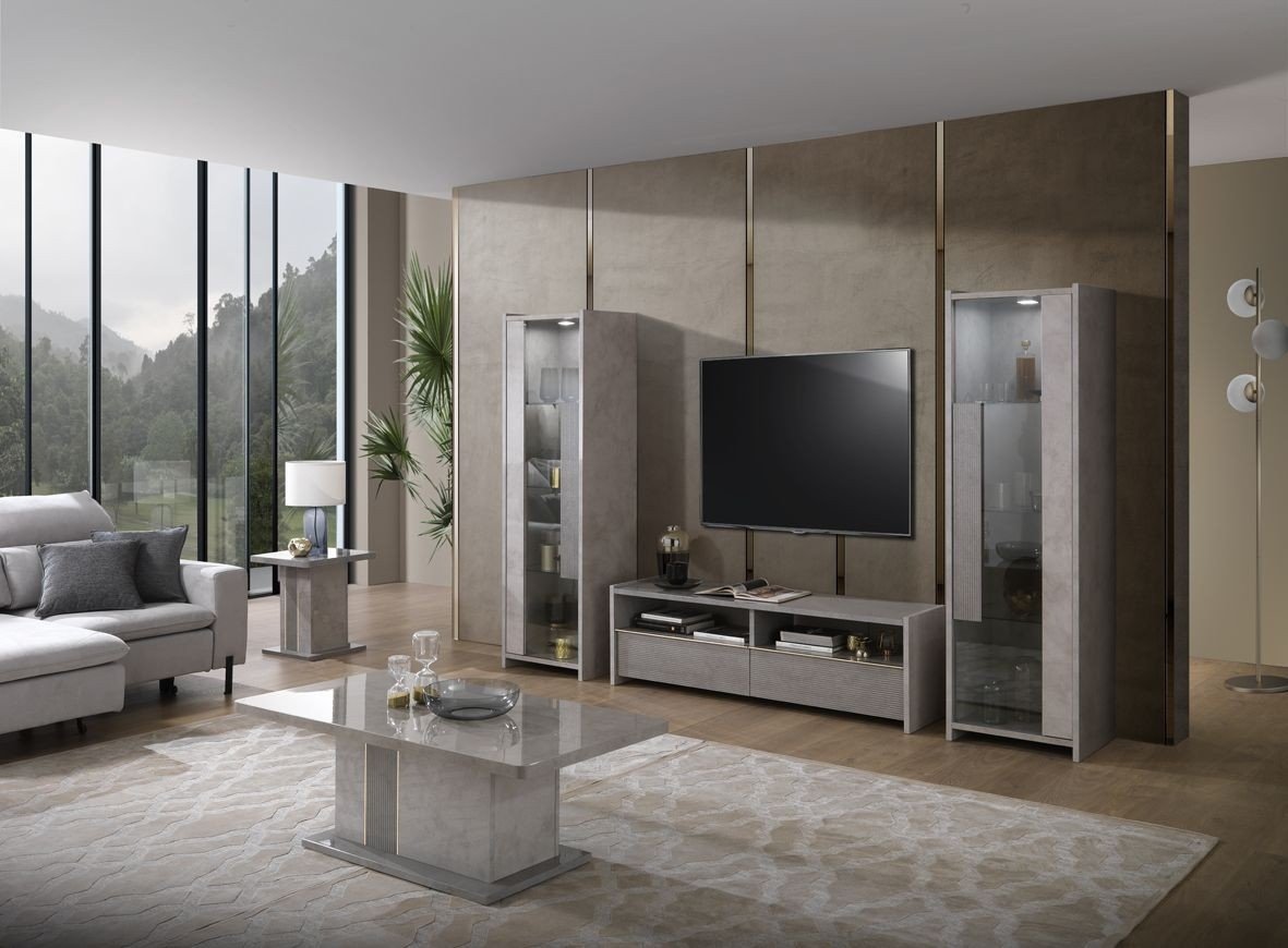 • Premium high-gloss grey lacquer finish for a refined contemporary look
