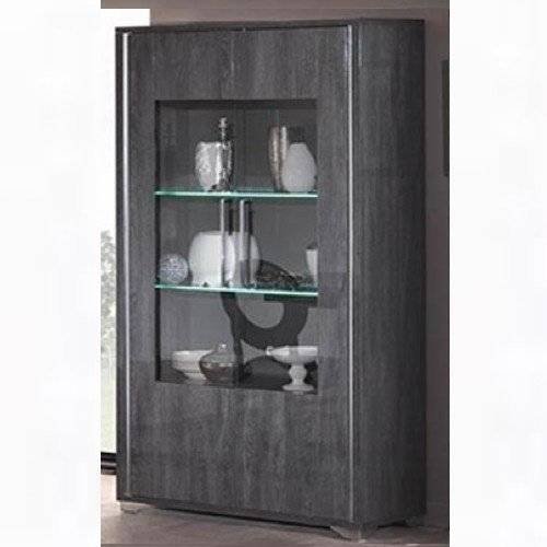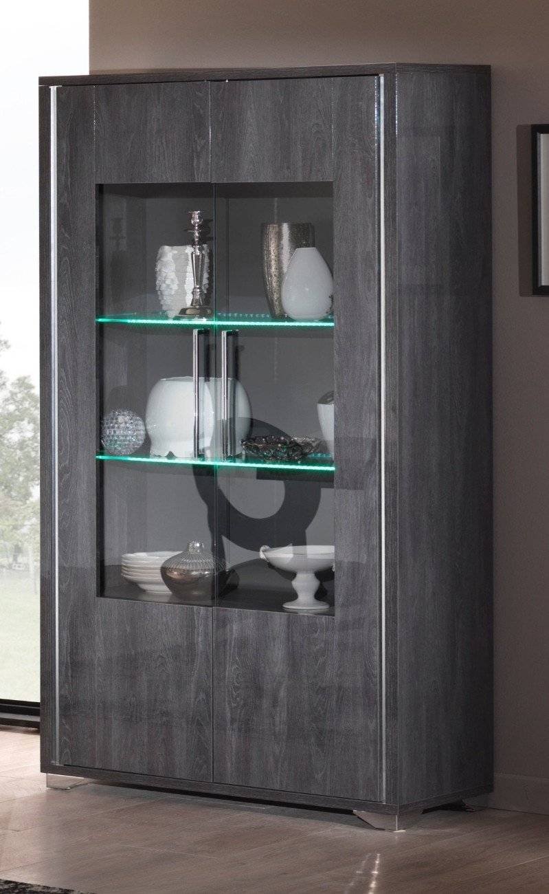 Harmony 2-Door Display Cabinet – Grey High Gloss Finish with LED Lighting