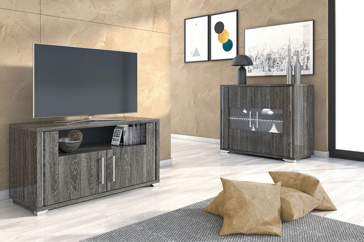 Harmony 2-Door Sideboard with LED – Grey High-Gloss Finish
