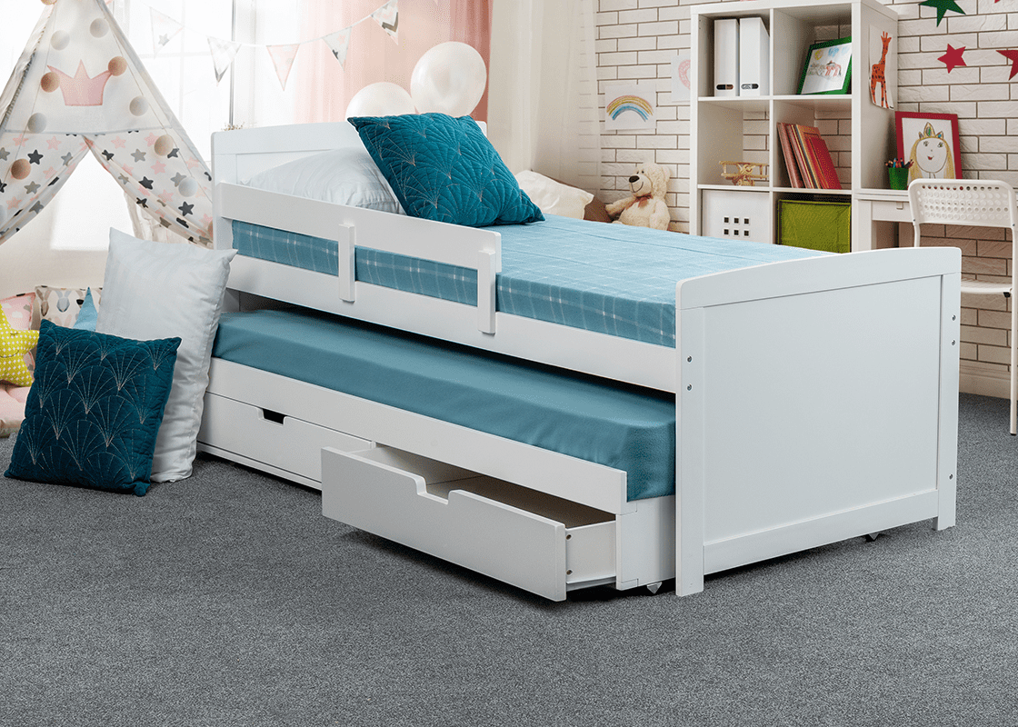 Juno 3ft Guest Bed with Trundle & Storage – White Wooden Frame