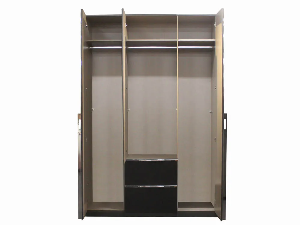Marina Metallic Grey & Basalt Glass 3 Door 2 Drawer Wardrobe with Mirror