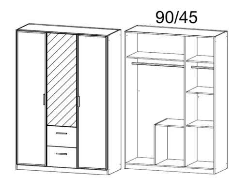 Dimensions: W136cm x D54cm x H197cm (standard triple wardrobe size)