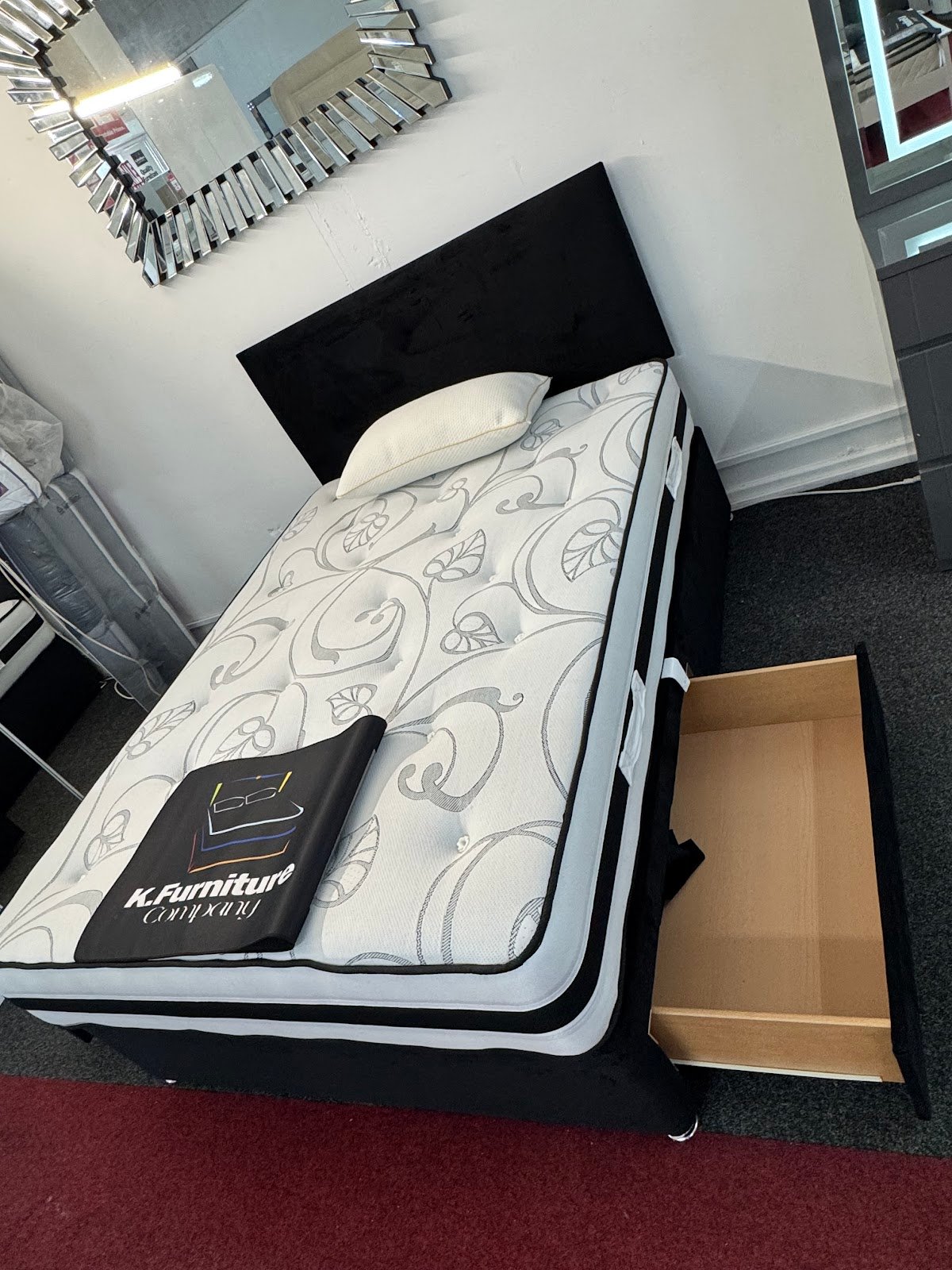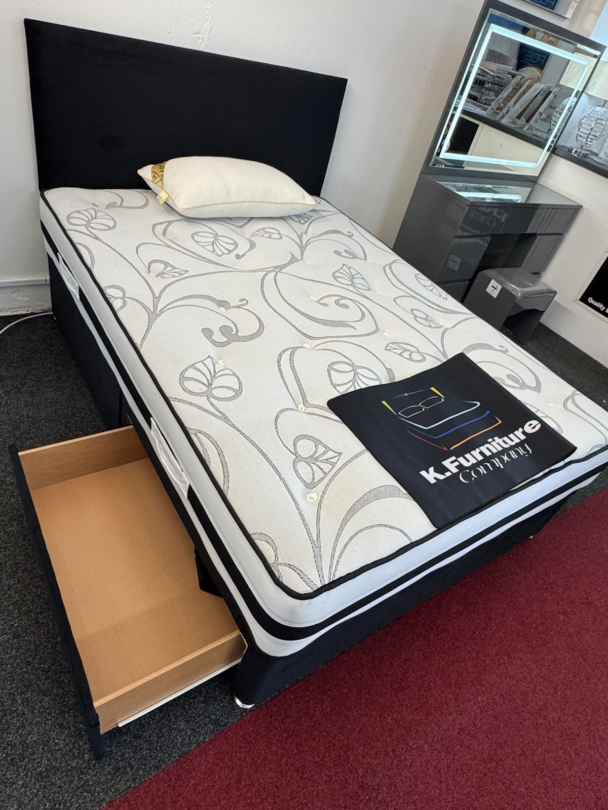 Featuring a superior open coil spring mattress, this bed offers a firm yet comfortable sleep surface, promoting a