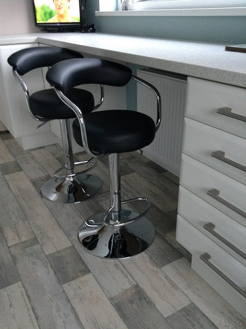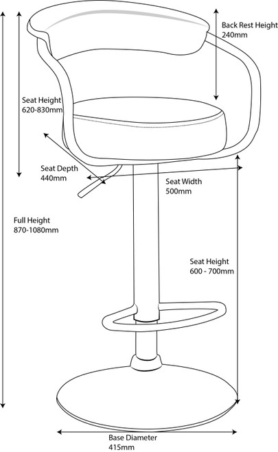 The Sorrento Bar Stool brings modern comfort and sleek design to any kitchen or bar space. Its curved backrest and cushioned PU leather seat provide excellent support, while the chrome pedestal base and footrest add a stylish shine. The gas-lift mechanism allows easy height adjustment, making it perfect for both kitchen counters and home bars.