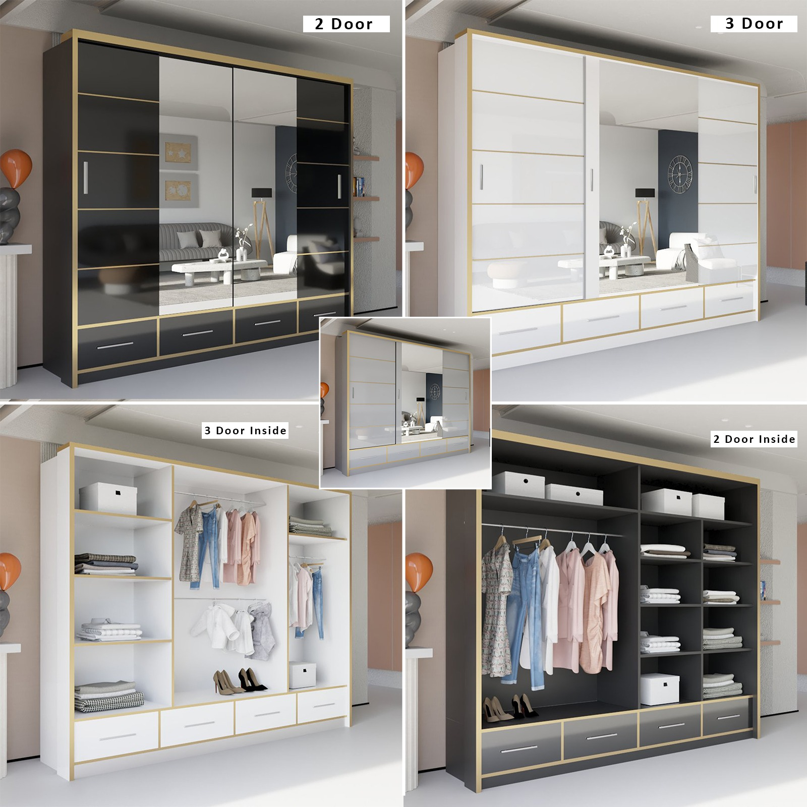 The Sydney High Gloss Wardrobe is the ultimate combination of elegance, functionality, and modern design. With its beautifully integrated full-length mirrored panel and luxurious gold detailing, it brings a sophisticated statement to any bedroom.